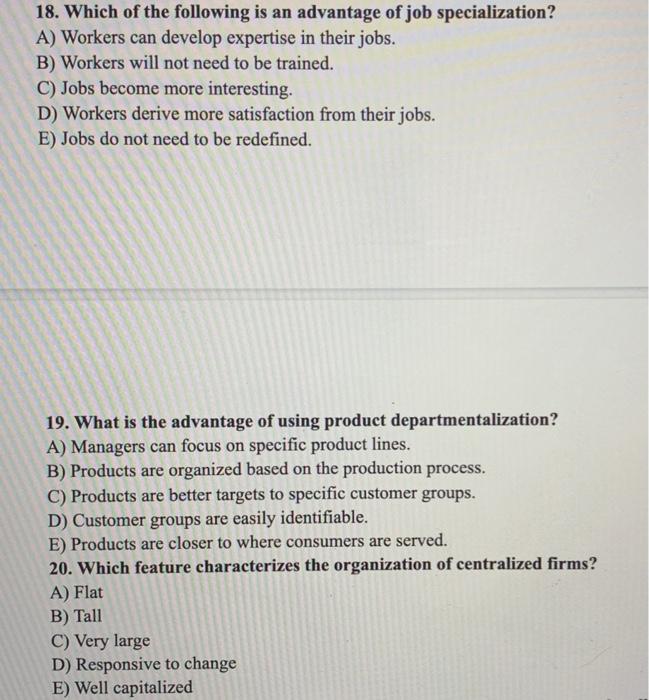 Solved 18 Which Of The Following Is An Advantage Of Job Chegg Com
