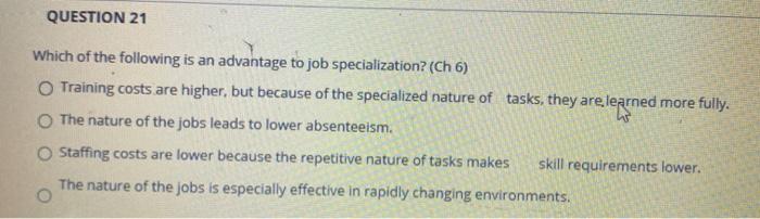 Which of the Following Is an Advantage of Job Specialization